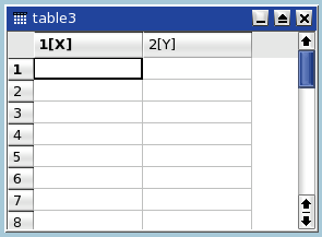 Creates a new (empty) table and adds it to the project. The empty table will have 30 rows and 2 columns. The number of rows and columns can be changed with the Rows and Columns of the Table menu.