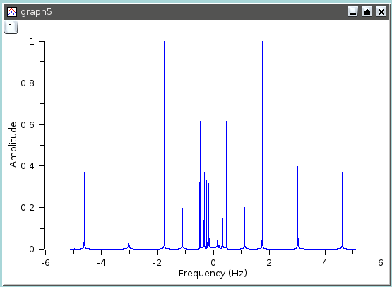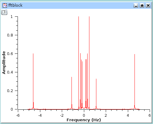 This signal has a power spectrum which contains both high and low frequencies. We can analyze this by doing a FFT on the data curve, this leads to the following figure:
