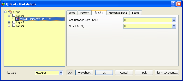 Each plot has individual offset settings, which can be modified on the Offset tab in the plot details dialog when the corresponding plot curve is selected in the left panel under the expanded Layer icon.