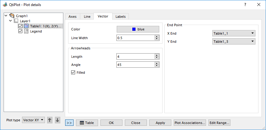 Finally, it's worth mentioning that you may change the vector type from XYXY to XYAM and vice versa using the Plot type drop-down list box from the bottom left corner of this dialog.
