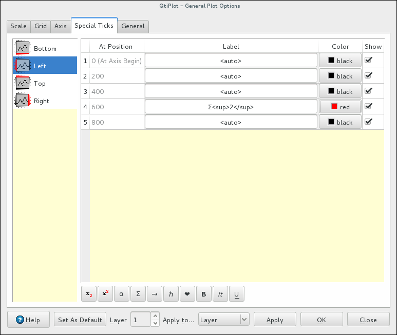 - The General Plot Options dialog raises an error message for input step values resulting in a number of major ticks larger than the maximum limit specified in the General tab.