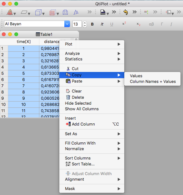 option from the pop-up menu! Copy/paste data text from and to Excel also available.