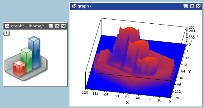 Using this command, an image may be loaded into a QtiPlot project and converted into an intensity matrix. For each pixel, an intensity between 0 and 255 is computed from the intensities of the three colors red, green and blue.
