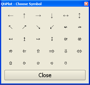 Clicking on the arrow icon opens a dialog which allows selecting various arrow symbols: