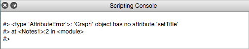 This window is mainly used to display error messages during the execution of Python scripts launched from note windows. It can be opened/closed using the Console command from the View menu.