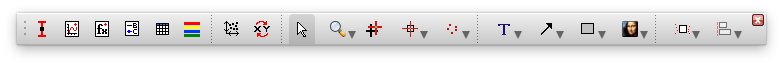 This toolbar is only active when a graph window is selected. It provides single-click access to the commands of the Graph menu and of the Data menu which are used for the modification of plots and the data points of the plots.