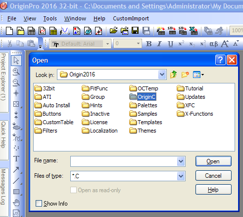 run.LoadOC(Originlab\\image_utils.c); getfile *.c; if (run.LoadOC(%A) == 0) importQtiPlot;
