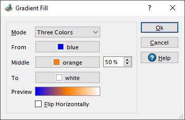 In the Three Colors mode this dialog displays a Middle color button, together with a percentage input box, allowing to choose the position of the third color in the colormap.
