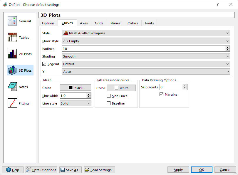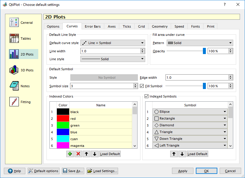 The Curves tab contains a large number of controls that define the default style used when creating a new plot. The operation of these controls should be self evident.