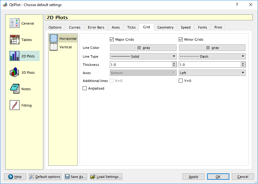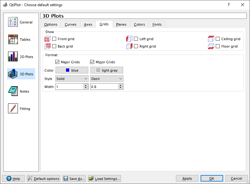 The Grid tab defines the default aspect of plot layer grids.