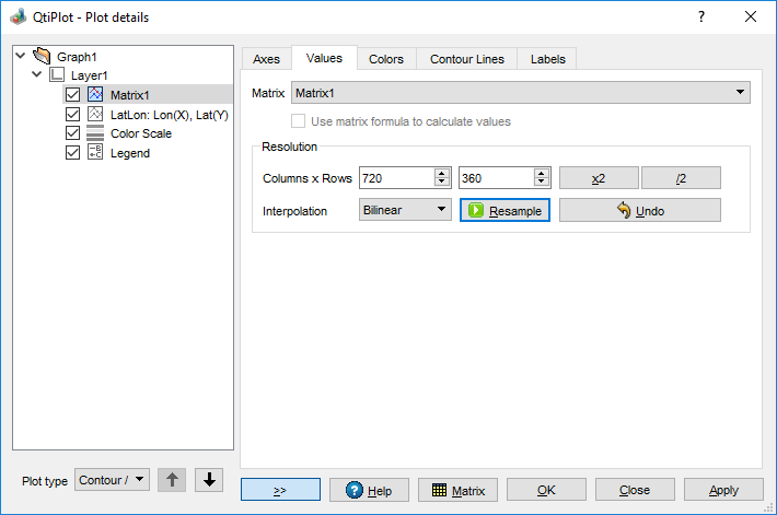 - Fixed display of the number of major ticks in 2D plots via the axes dialog.