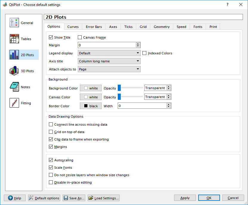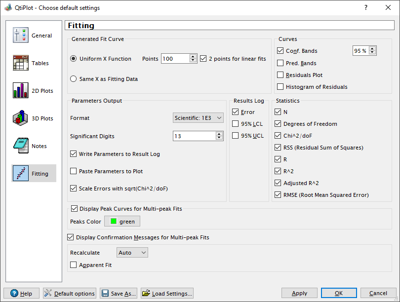 default settings for the tables (fonts, colors) and for the 2D plots. You can also custom the prompts on windows closing.
