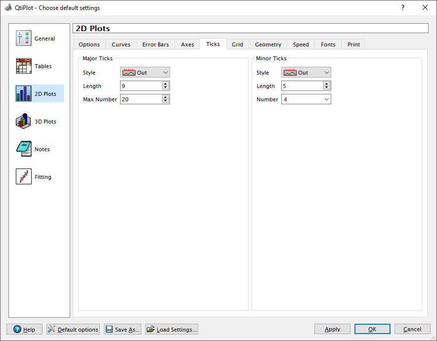 - The General Plot Options dialog raises an error message for input step values resulting in a number of major ticks larger than the maximum limit specified in the General tab.