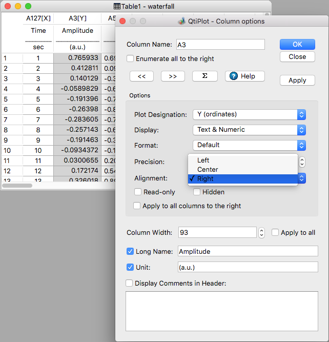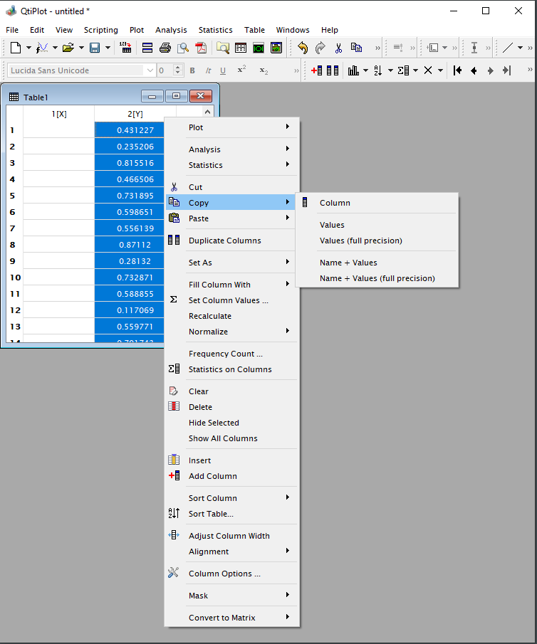 option from the pop-up menu! Copy/paste data text from and to Excel also available.