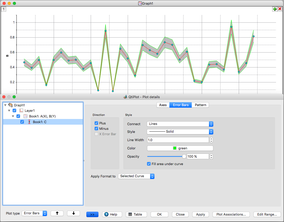 Auto-scaling for error bars. Improved zooming. Improved copy/paste operation to and from tables. You can easily select multiple columns for plotting using mouse dragging.